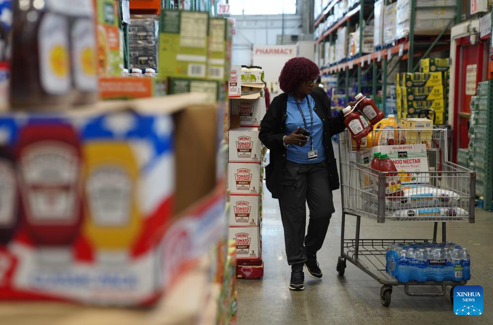 People shop at a supermarket in New York, the United States, on April 10, 2026. Earlier on Friday, the U.S. Bureau of Labor Statistics reported that the consumer price index in March rose 0.9 percent month on month and 3.3 percent year on year, with most of the increase coming from the surge in energy prices. (Xinhua/Zhang Fengguo)