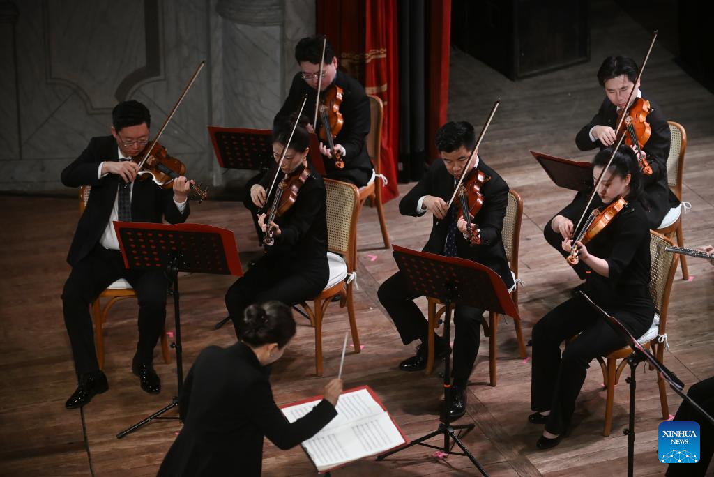 Musicians from the China National Symphony Orchestra perform at a concert celebrating the China-Brazil Cultural Year in Fortaleza, Ceara, Brazil, April 11, 2026. (Photo by Lucio Tavora/Xinhua)