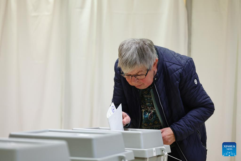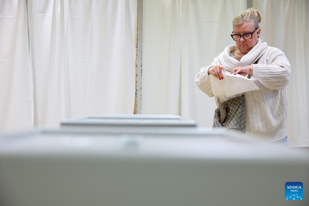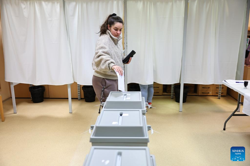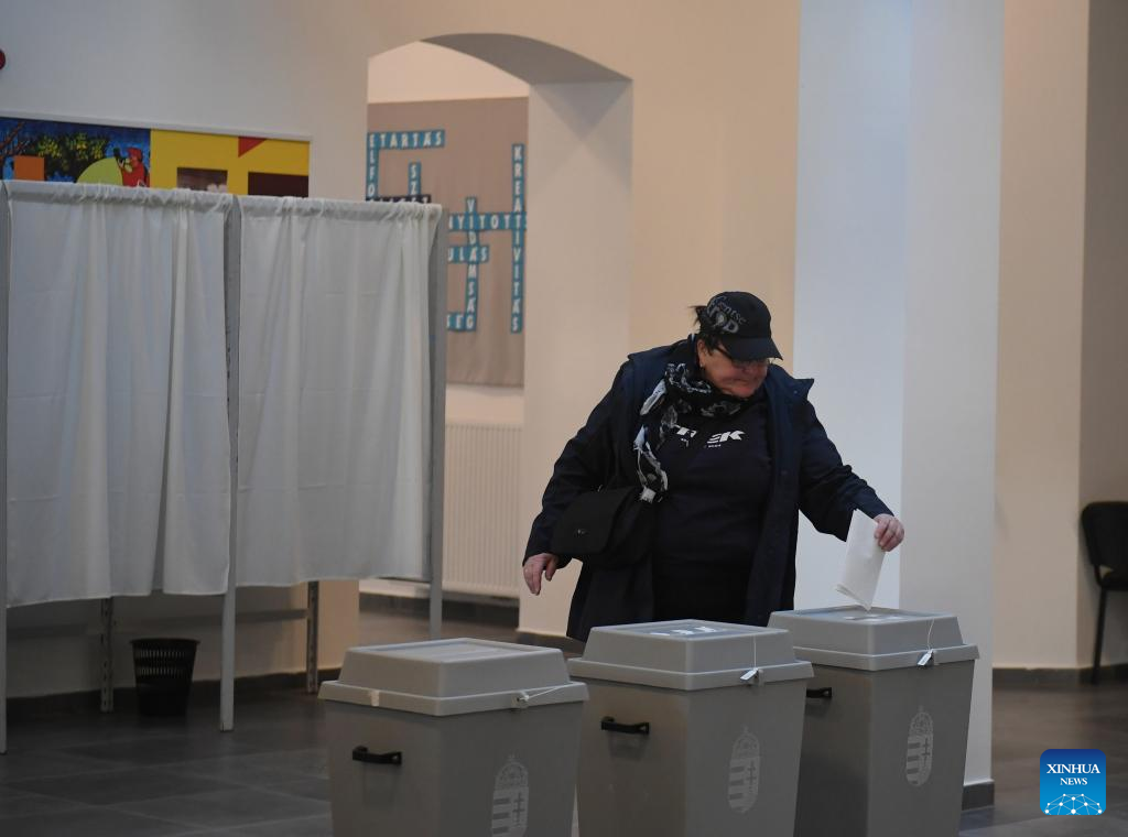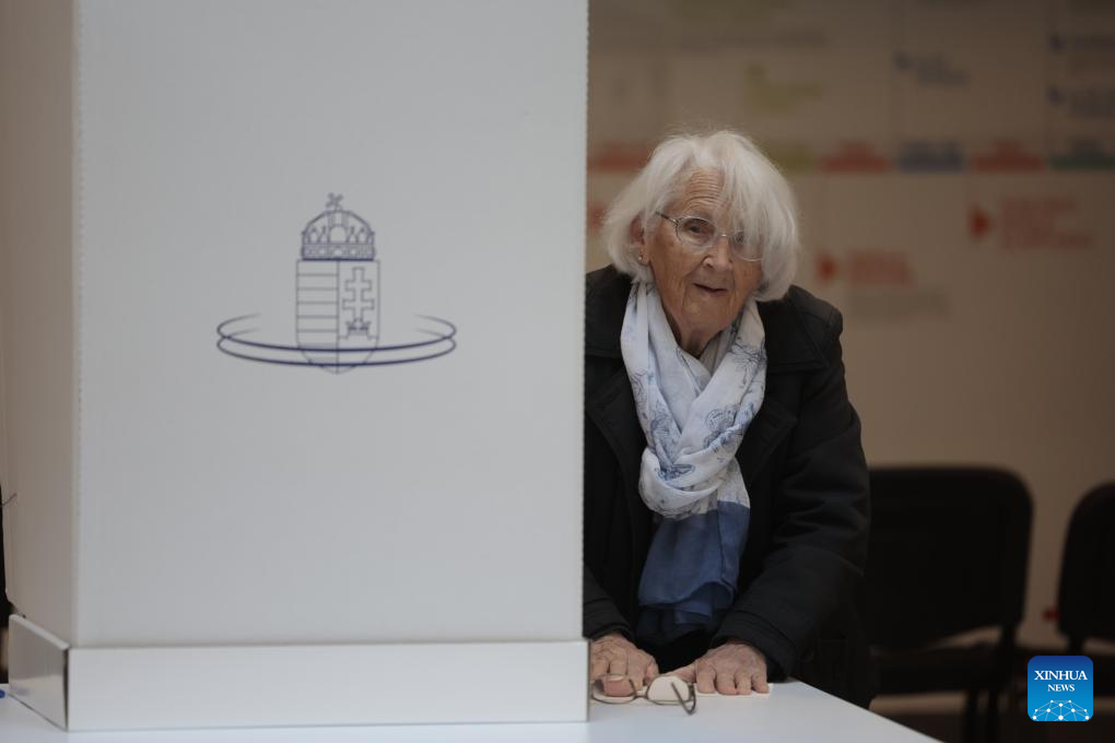 A voter casts her ballot at a polling station in Budapest, Hungary, April 12, 2026. Hungary's parliamentary elections kicked off at 6:00 a.m. local time (0400 GMT) on Sunday, with about 8.1 million eligible voters, according to the National Election Office. (Photo by David Balogh/Xinhua)