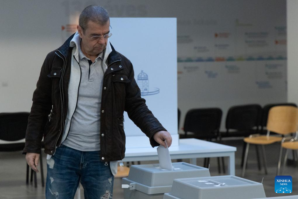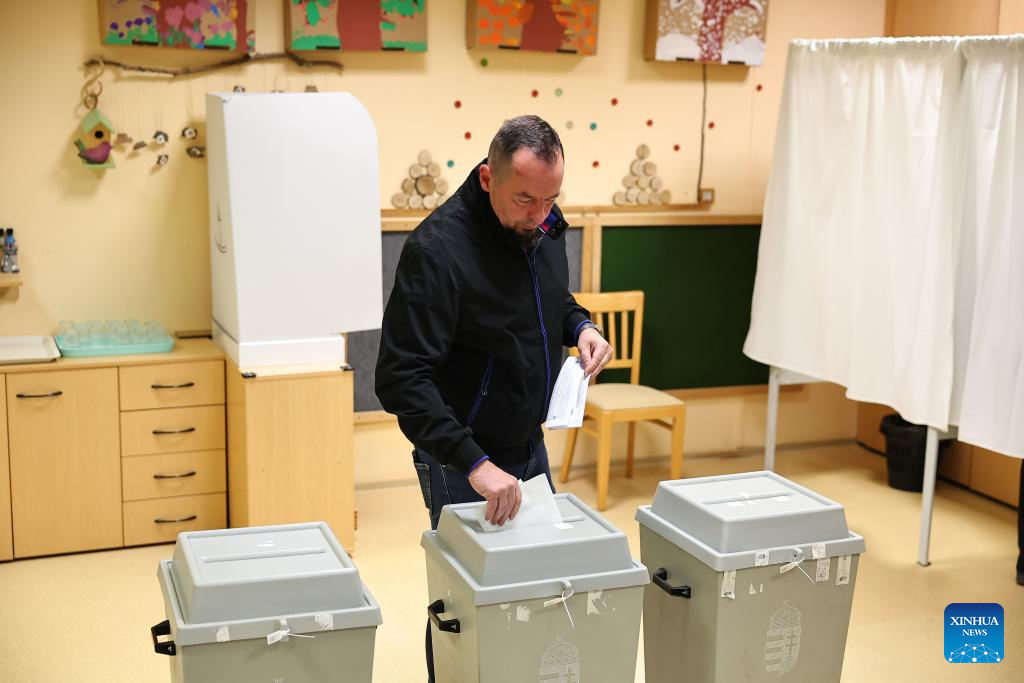A voter casts his ballot at a polling station in Budapest, Hungary, April 12, 2026. Hungary's parliamentary elections kicked off at 6:00 a.m. local time (0400 GMT) on Sunday, with about 8.1 million eligible voters, according to the National Election Office. (Photo by David Balogh/Xinhua)