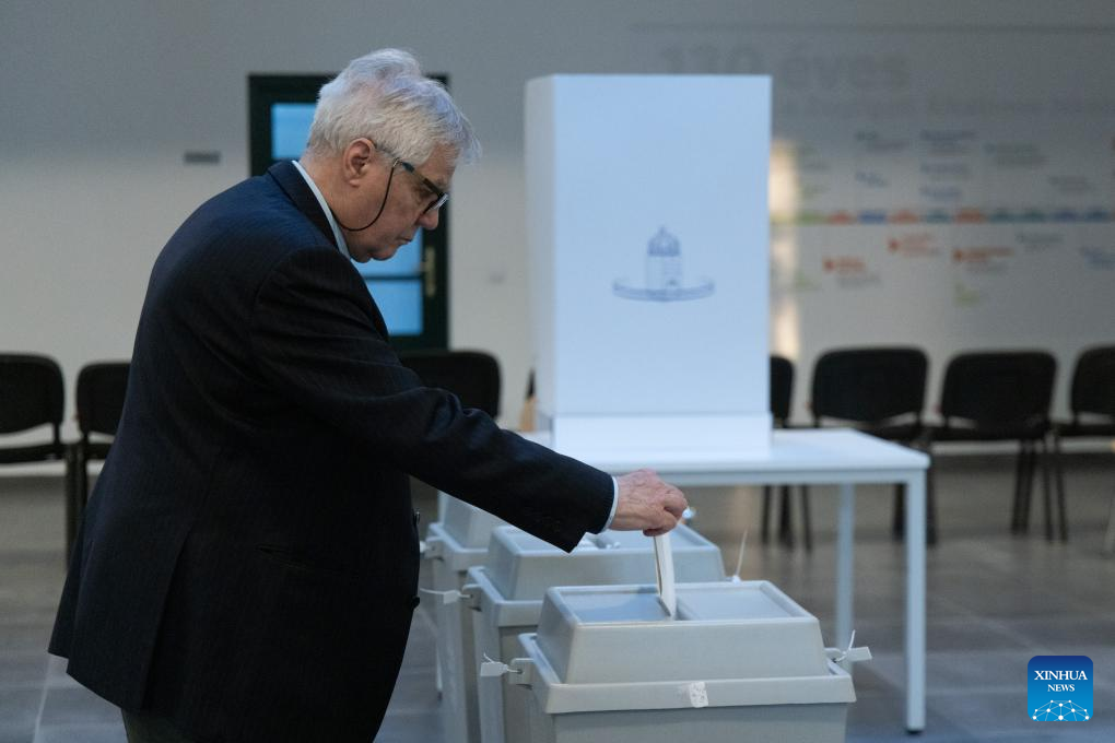 Peter Magyar, leader of Hungary's opposition party Tisza, casts his ballot at a polling station in Budapest, Hungary, April 12, 2026. Hungary's parliamentary elections kicked off at 6:00 a.m. local time (0400 GMT) on Sunday, with about 8.1 million eligible voters, according to the National Election Office. (Photo by David Balogh/Xinhua)