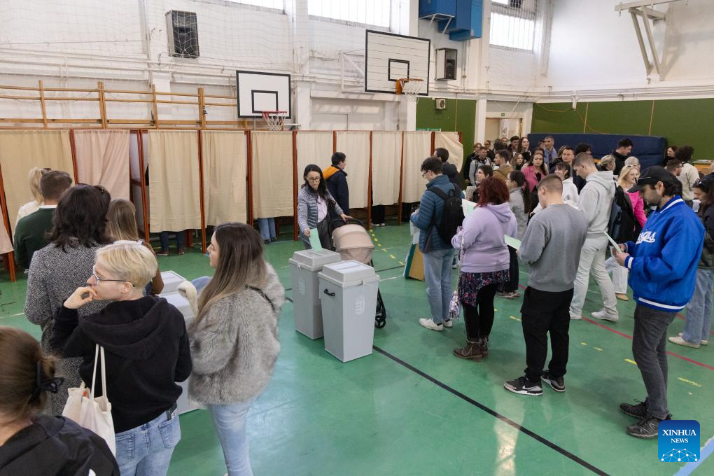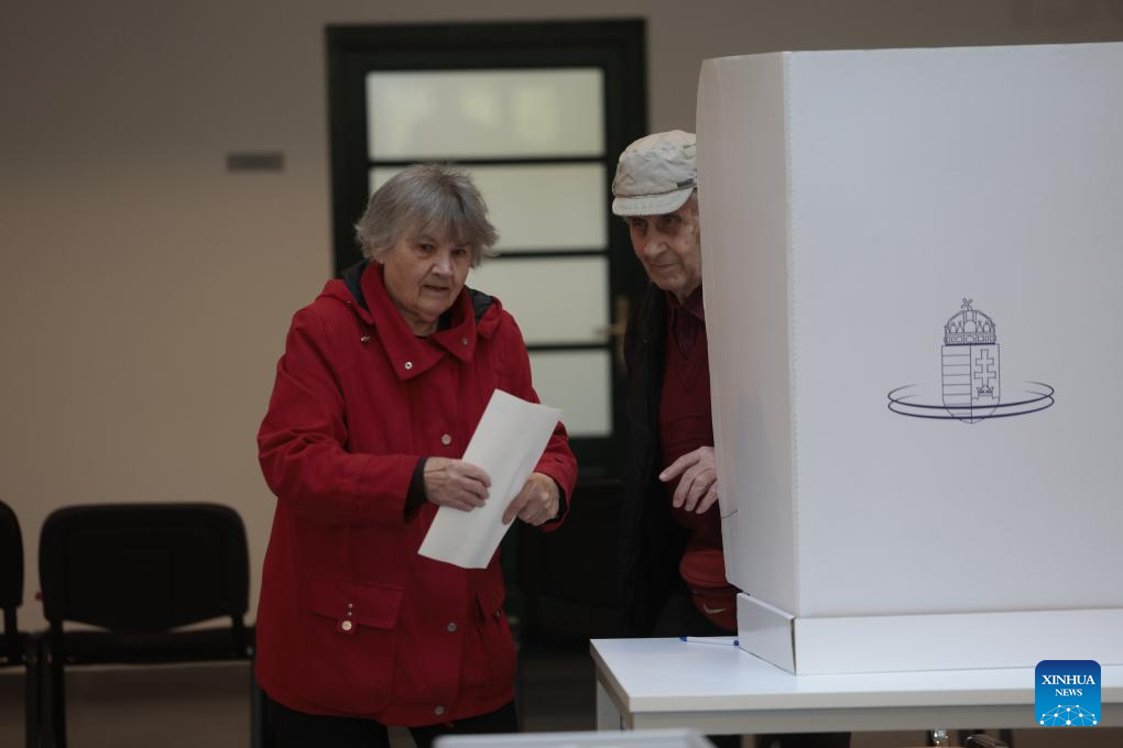 Voters are seen at a polling station in Budapest, Hungary, April 12, 2026. (Xinhua/He Canling)