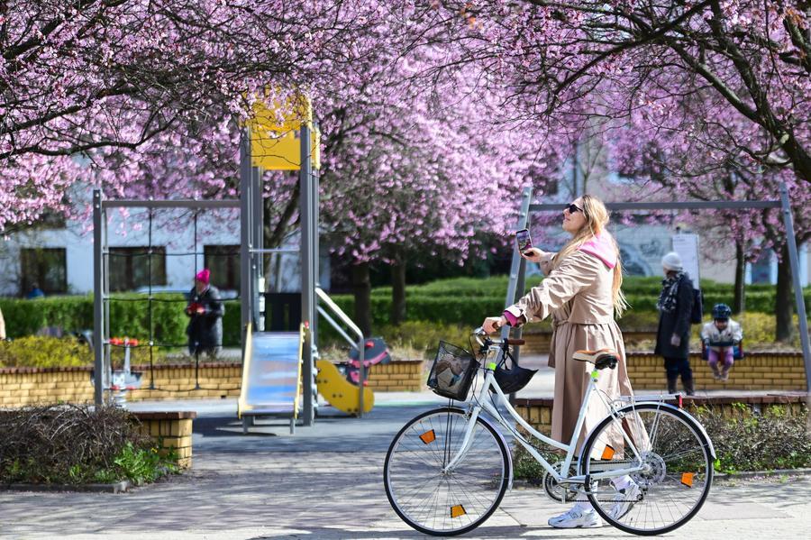 Cheng Li-wun, chairwoman of the Chinese Kuomintang (KMT) party, visits the Biyun Temple together with a KMT delegation at Fragrant Hills in the western suburbs of Beijing, capital of China, April 11, 2026. Cheng led the delegation on Saturday to pay tribute to Sun Yat-sen, a great forerunner of China's democratic revolution, at the cenotaph in Biyun Temple in Beijing. (Xinhua/Chen Yehua)A Smart Dragon-3 (SD-3) carrier rocket carrying a test satellite blasts off from waters off the coast of Yangjiang in south China's Guangdong Province, April 11, 2026. China on Saturday launched a SD-3 carrier rocket from the sea, sending a test satellite into its planned orbit to promote satellite internet technology. The SD-3 rocket blasted off at 7:32 p.m. (Beijing Time) from waters off the coast of Yangjiang in south China's Guangdong Province. (Photo by Guo Jinqi/Xinhua)An aerial drone photo taken on April 10, 2026 shows vehicles to be exported at a ro-ro dock of Tianjin Port in north China's Tianjin. China's automobile production and sales rose sharply in March from the previous month, industry data showed on Friday. Automobile output totaled 2.92 million units in March and sales came in at 2.9 million units, surging 74.4 percent and 60.6 percent month on month, respectively, according to the China Association of Automobile Manufacturers. New energy vehicle (NEV) output and sales stood at 1.23 million units and 1.25 million units, respectively. (Photo by Du Penghui/Xinhua)Foreign students take selfies with flowers in Baitu Town of Jurong, east China's Jiangsu Province, April 10, 2026. (Photo by Zhong Xueman/Xinhua)This photo taken on April 11, 2026 shows a view of the Hainan International Convention and Exhibition Center, the main venue for the upcoming sixth China International Consumer Products Expo (CICPE), in Haikou, south China's Hainan Province. Scheduled to take place in south China's Hainan Province from April 13 to 18, this expo will see the participation of more than 3,400 brands from over 60 countries and regions. (Xinhua/Pu Xiaoxu)Players of Changzhou and Nantong team wait for the opening kickoff during the opening match of the 2026 Jiangsu Football City League in Changzhou, east China's Jiangsu Province, April 11, 2026. (Xinhua/Li Bo)NASA's Orion spacecraft carrying Artemis II crew members is seen as it splashes down in the Pacific Ocean off the coast of California, the United States, on April 10, 2026. (Bill Ingalls/NASA/Handout via Xinhua)U.S. Vice President JD Vance arrives at the Nur Khan airbase in Rawalpindi, Pakistan, on April 11, 2026. U.S. delegates led by Vice President JD Vance arrived in Pakistan on Saturday morning for talks with Iran, according to sources. (Xinhua)Zoran Stevanovic addresses the parliament during the first session of the new Slovenian parliament in Ljubljana, Slovenia, April 10, 2026. Stevanovic, leader of the center-right party Resni.ca, was elected speaker of the Slovenia's parliament, which was inaugurated on Friday. (Photo by Zeljko Stevanic/Xinhua)A pedestrian takes photos under blooming cherry trees in Warsaw, Poland, on April 10, 2026. (Photo by Aleksy Witwicki/Xinhua)■
