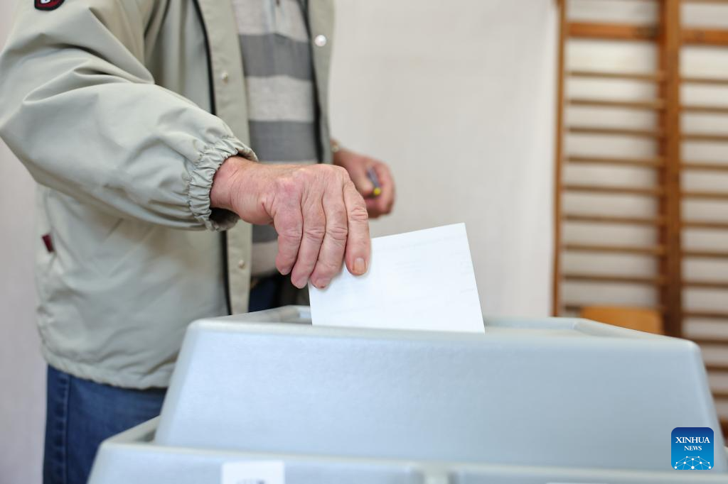A voter casts his ballot at a polling station in Budapest, Hungary, April 12, 2026. Hungary's parliamentary elections kicked off at 6:00 a.m. local time (0400 GMT) on Sunday, with about 8.1 million eligible voters, according to the National Election Office. (Photo by David Balogh/Xinhua)
