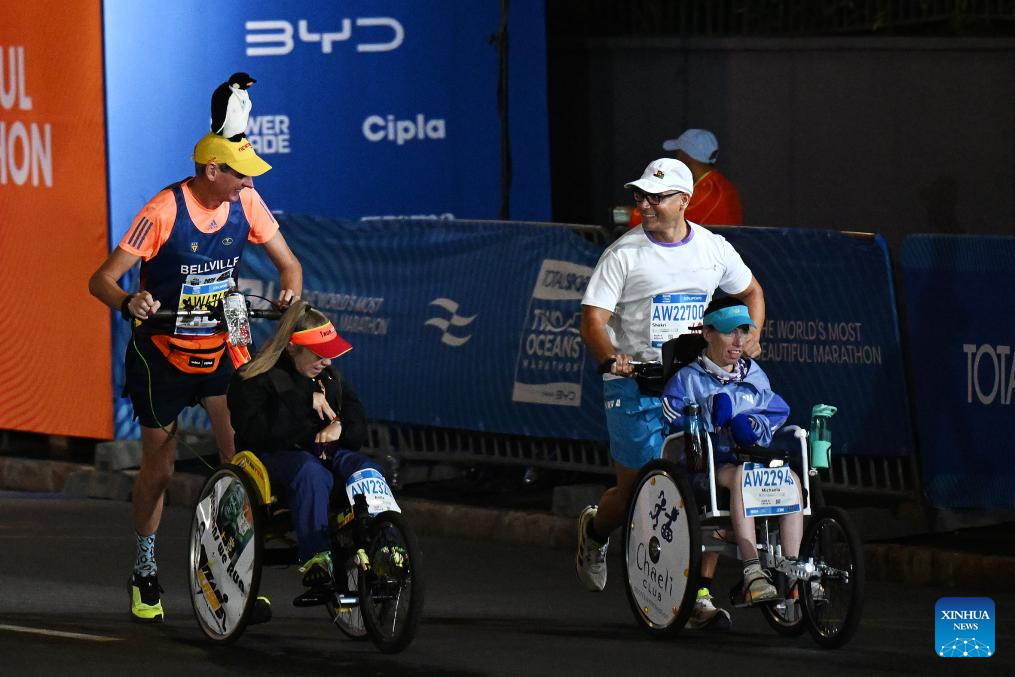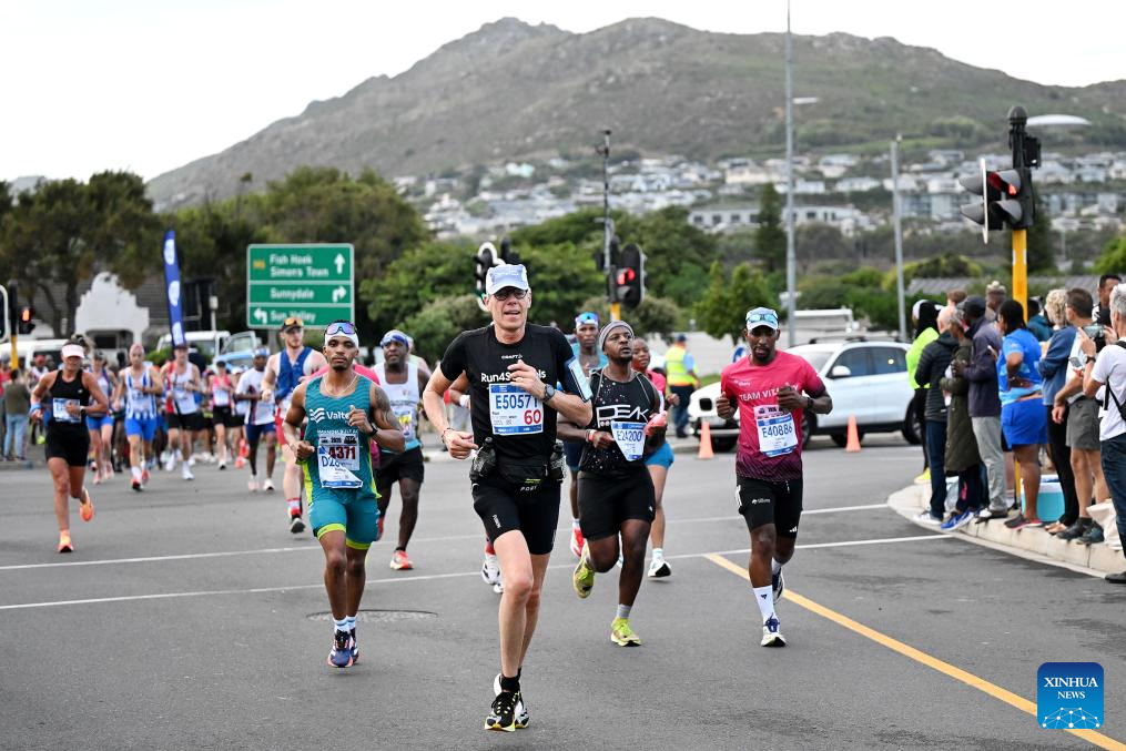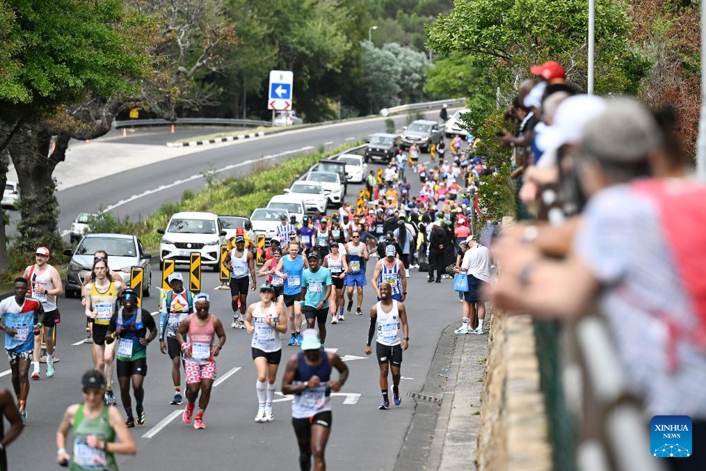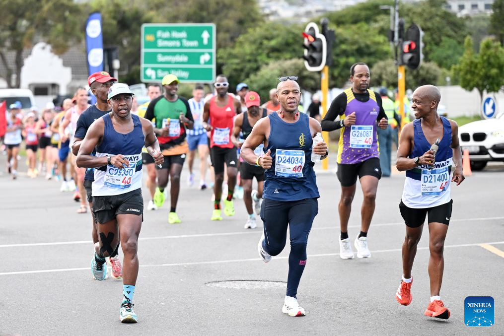 Participants run during the 2026 Two Oceans Marathon in Cape Town, South Africa, on April 11, 2026. (Photo by Xabiso Mkhabela/Xinhua)