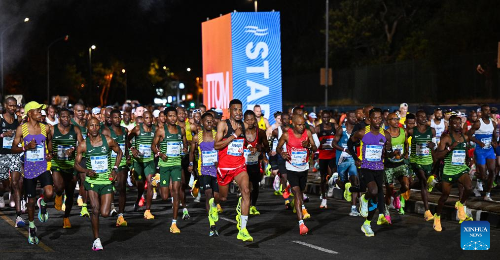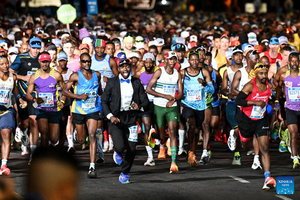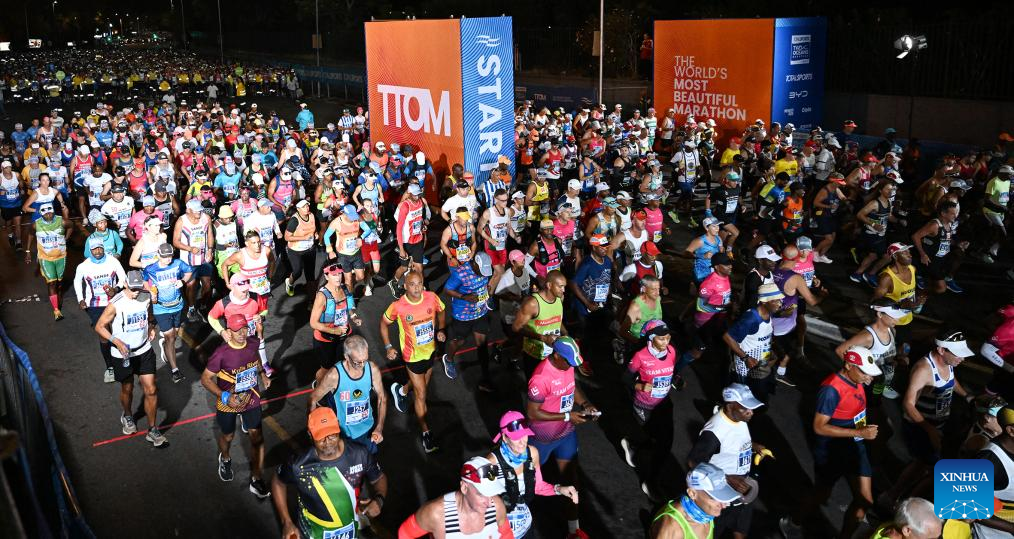 Participants head out from the starting point before the 2026 Two Oceans Marathon in Cape Town, South Africa, on April 11, 2026. (Photo by Xabiso Mkhabela/Xinhua)