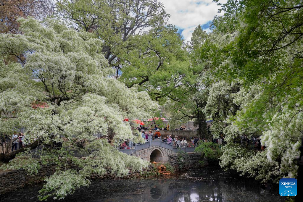 People visit the Sangling Village of Jianchuan County, southwest China's Yunnan Province, April 11, 2026. (Photo by Luo Xincai/Xinhua)
