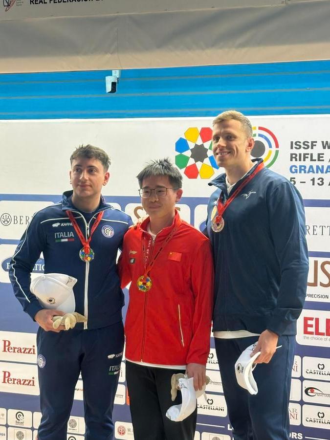 Later on Saturday, in the men's 25m rapid fire pistol final, which featured eight finalists under the new format, 20-year-old Yang battled all the way from the bottom to claim the gold medal with 31 hits. Massimo Spinella of Italy took the silver with 30 hits while Tokyo Olympic champion Jean Quiquampoix of France settled for a bronze with 27 hits.