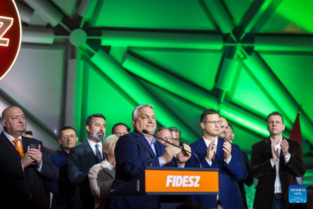 BUDAPEST, April 12 (Xinhua) -- Hungarian Prime Minister Viktor Orban conceded defeat in Sunday's parliamentary elections, as partial results showed the opposition Tisza party securing a majority.