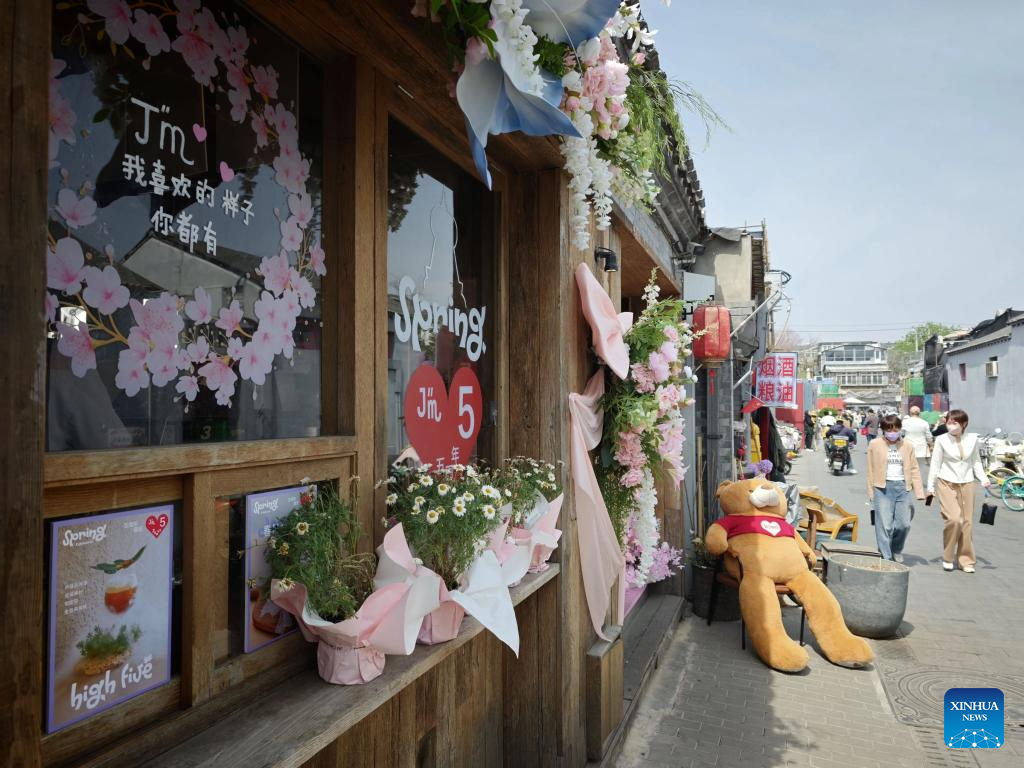 People visit a hutong alleyway near the Miaoying Temple, also known as the White Stupa Temple, in Beijing, capital of China, April 12, 2026. (Xinhua/Xing Guangli)