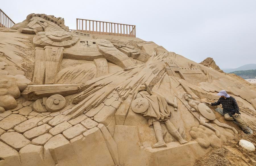 An artist works on a sand sculpture at the Nansha scenic area in Zhujiajian, Zhoushan City, east China's Zhejiang Province, April 14, 2026. (Xinhua/Xu Yu)An artist works on a sand sculpture at the Nansha scenic area in Zhujiajian, Zhoushan City, east China's Zhejiang Province, April 14, 2026. (Xinhua/Xu Yu)An artist works on a sand sculpture at the Nansha scenic area in Zhujiajian, Zhoushan City, east China's Zhejiang Province, April 14, 2026. (Xinhua/Xu Yu)This photo taken on April 14, 2026 shows a partially completed sand sculpture at the Nansha scenic area in Zhujiajian, Zhoushan City, east China's Zhejiang Province. (Xinhua/Xu Yu)An artist works on a sand sculpture at the Nansha scenic area in Zhujiajian, Zhoushan City, east China's Zhejiang Province, April 14, 2026. (Xinhua/Xu Yu)This photo taken on April 14, 2026 shows partially completed sand sculptures at the Nansha scenic area in Zhujiajian, Zhoushan City, east China's Zhejiang Province. (Xinhua/Xu Yu)■