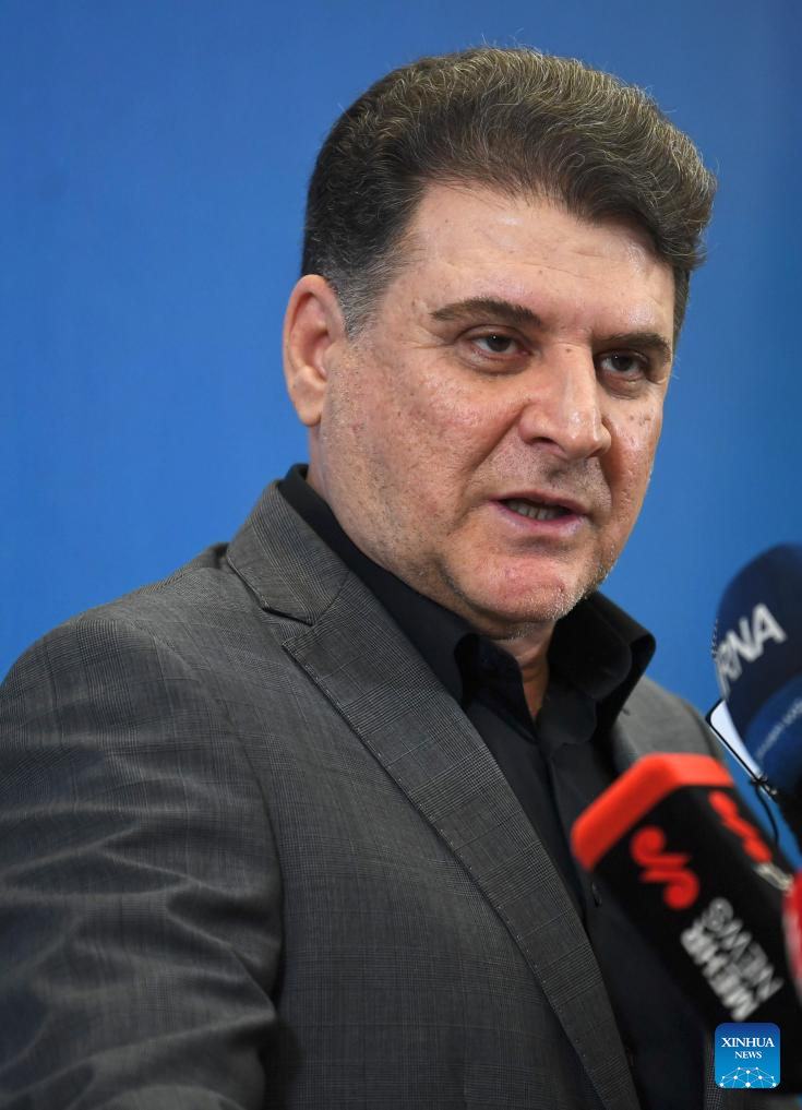 Iran's Deputy Interior Minister for Political Affairs Ali Zeinivand attends a press conference in Tehran, Iran, April 13, 2026. Zeinivand said on Monday the country has no serious concern regarding security along its land and sea borders. (Xinhua/Shadati)