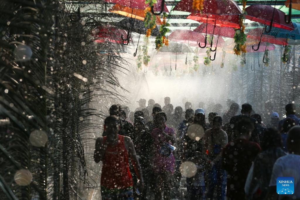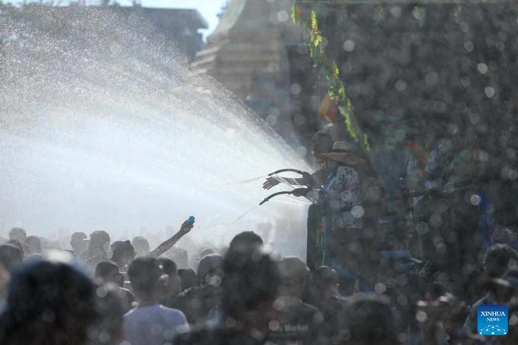YANGON, April 14 (Xinhua) -- Crowds across Myanmar continued to celebrate the traditional Thingyan water festival on Tuesday, the second day of the festivities, reuniting with family and taking part in traditional activities.