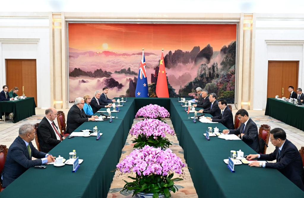Wang said China is willing to work with New Zealand to implement the important consensus reached by the two countries' leaders, solidify the political foundation of bilateral relations, and maintain the correct direction of cooperation for mutual benefit.