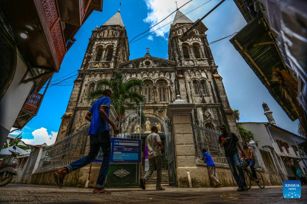 Pedestrians walk past the Catholic Museum Zanzibar in Stone Town, Zanzibar, Tanzania, March 24, 2026. (Xinhua/Emmanuel Herman)