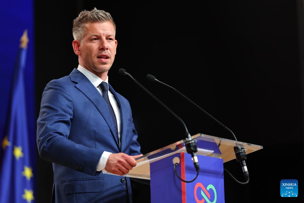 BUDAPEST, April 13 (Xinhua) -- Peter Magyar, whose Tisza party won Hungary's parliamentary election on Sunday, has pledged constructive cooperation with the European Union (EU) while pursuing a pragmatic approach to foreign and economic policy.