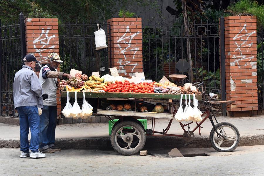 A vendor sells vegetable and fruit on a street in Havana, capital of Cuba, Feb. 23, 2026. (Photo by Joaquin Hernandez/Xinhua)