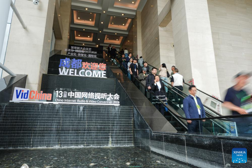 People visit the 13th China Internet Audio and Video Convention in Chengdu, southwest China's Sichuan Province, April 15, 2026. The convention kicked off here on Wednesday, featuring a series of thematic forums, release events, film screenings and other activities. (Xinhua/Wang Xi)