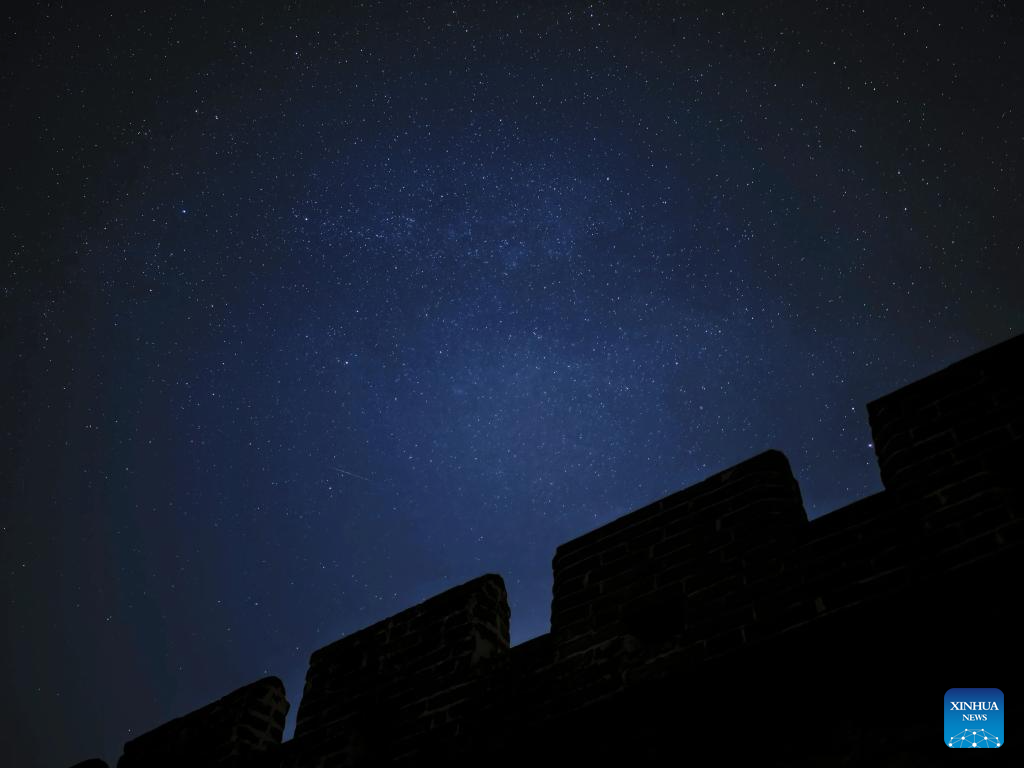 This photo taken on April 15, 2026 shows a view of the starry sky above the Jinshanling section of the Great Wall in Chengde City, north China's Hebei Province. (Xinhua/Xing Guangli)
