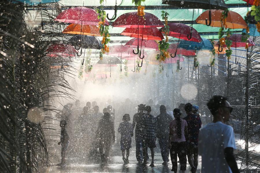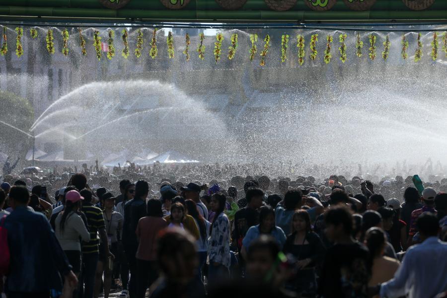 YANGON, April 15 (Xinhua) -- Crowds across Myanmar continued to celebrate the traditional Thingyan water festival on Tuesday, the second day of the festivities, reuniting with family and taking part in traditional activities.
