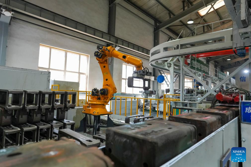 A robot conducts maintenance work at a workshop of China Railway Harbin Bureau Group Co., Ltd. in Harbin, northeast China's Heilongjiang Province, April 15, 2026.