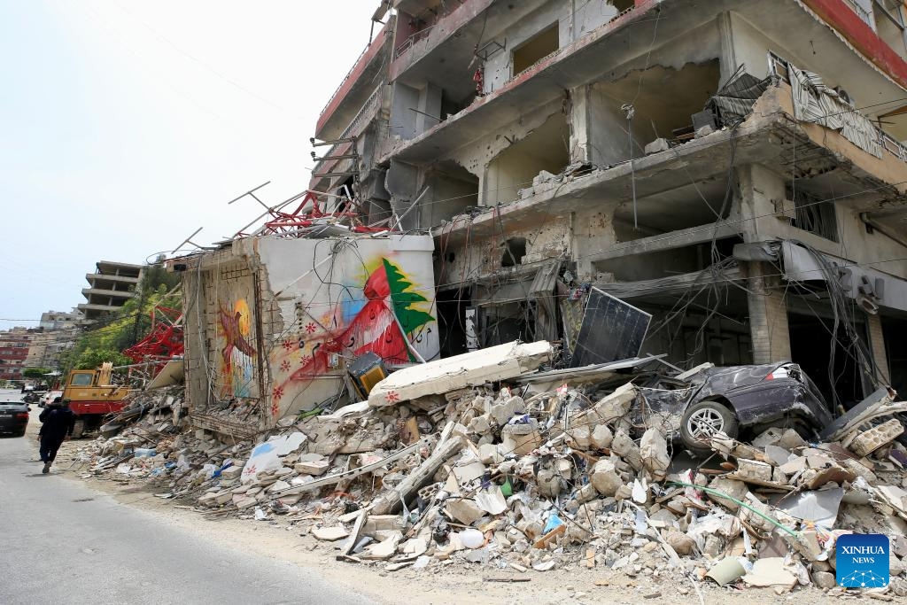Photo taken on April, 15, 2026, shows residential buildings damaged by Israeli raids in Tyre, southern Lebanon. (Photo by Ali Hashisho/Xinhua)