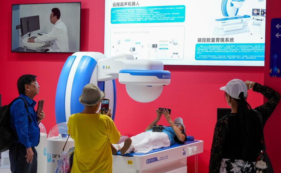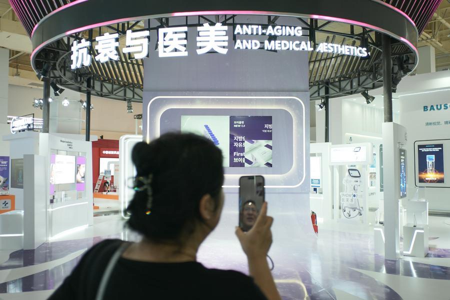 People visit the GE HealthCare booth at the international health and wellness sub-venue of the sixth China International Consumer Products Expo (CICPE) at Boao Lecheng International Medical Tourism Pilot Zone in Qionghai, south China's Hainan Province, April 16, 2026. (Xinhua/Gao Jing)