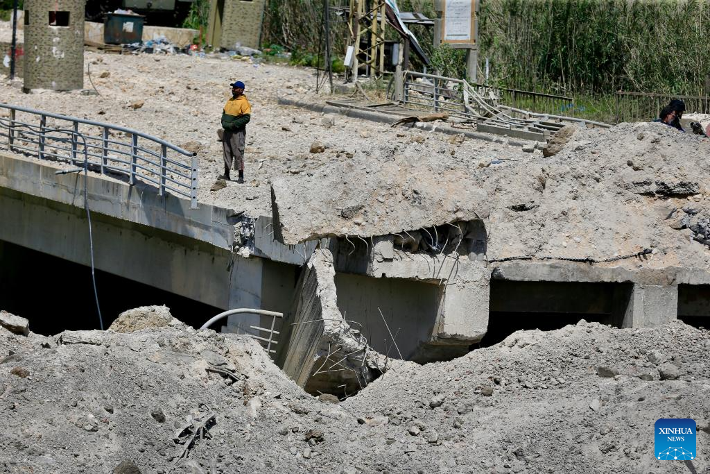 BEIRUT, April 16 (Xinhua) -- Israeli warplanes carried out two consecutive airstrikes on the Qasmiyeh Bridge over the Litani River in southern Lebanon on Thursday, completely destroying it, according to Al Jadeed TV.
