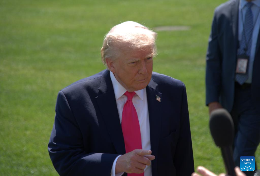 U.S. President Donald Trump speaks to the press on the South Lawn of the White House in Washington, D.C., the United States, April 16, 2026. Trump said Thursday he would consider visiting Pakistan if a peace deal is reached between the United States and Iran to end the weekslong conflict. (Photo by Li Yuanqing/Xinhua)