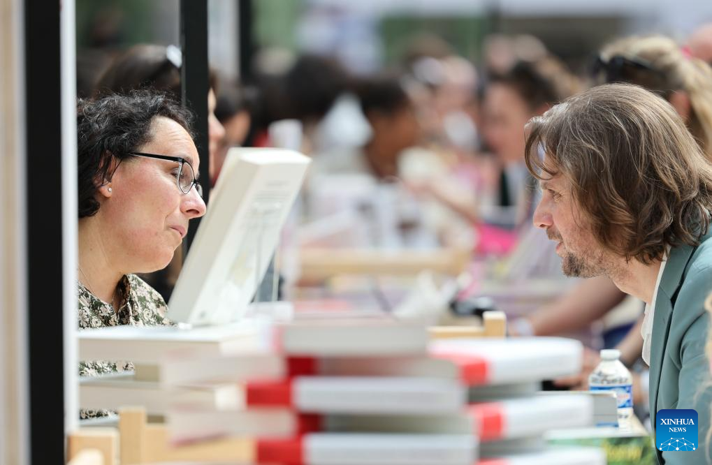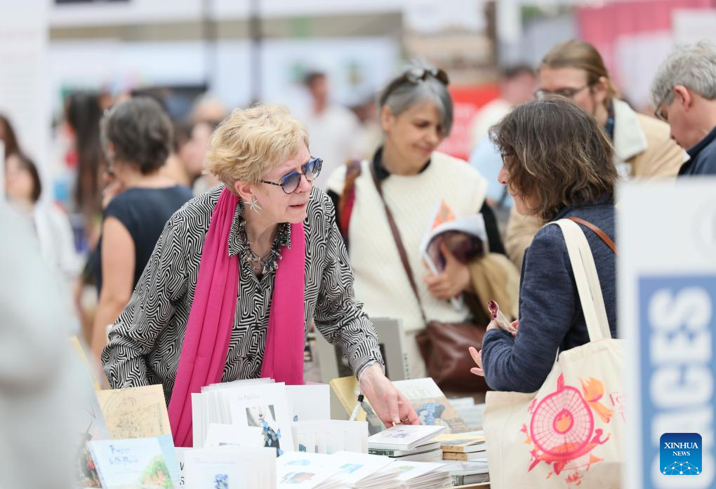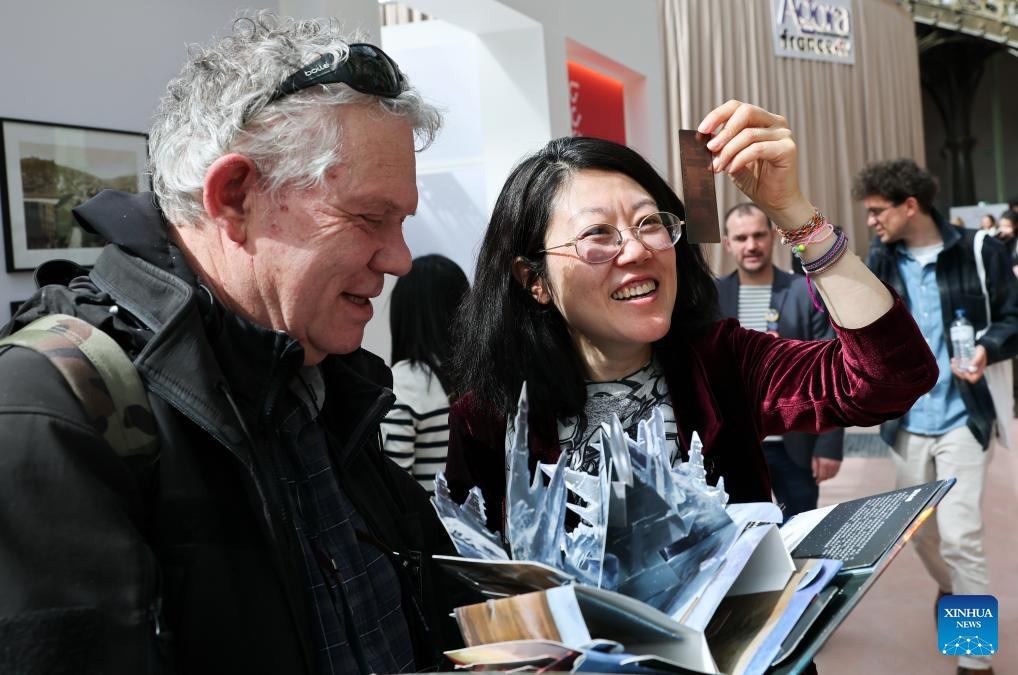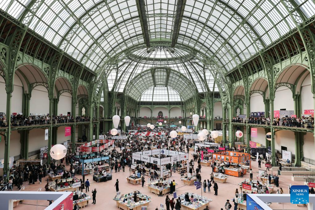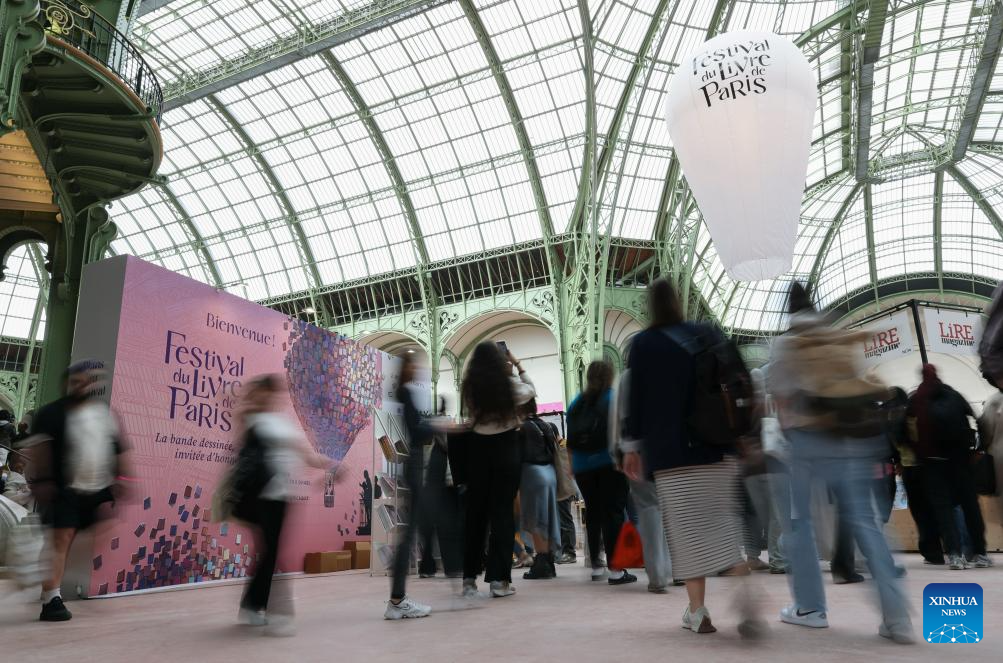 People visit the Paris Book Festival 2026 at the Grand Palais in Paris, France, April 17, 2026. The three-day event opened here on Friday. (Xinhua/Wu Huiwo)