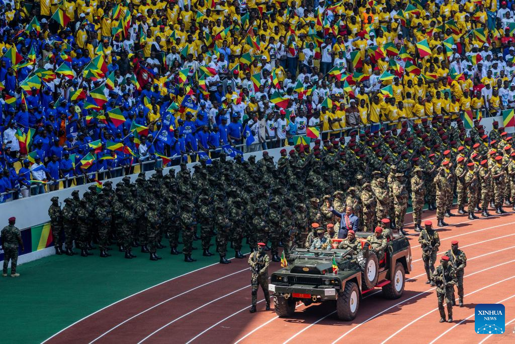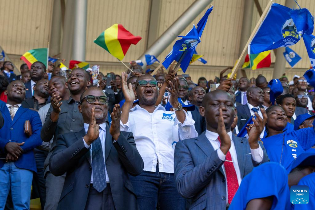 The ceremony took place at Kintele Stadium in the northern suburbs of Brazzaville, the capital city, in the presence of several African heads of state. (Xinhua/Zheng Yangzi)