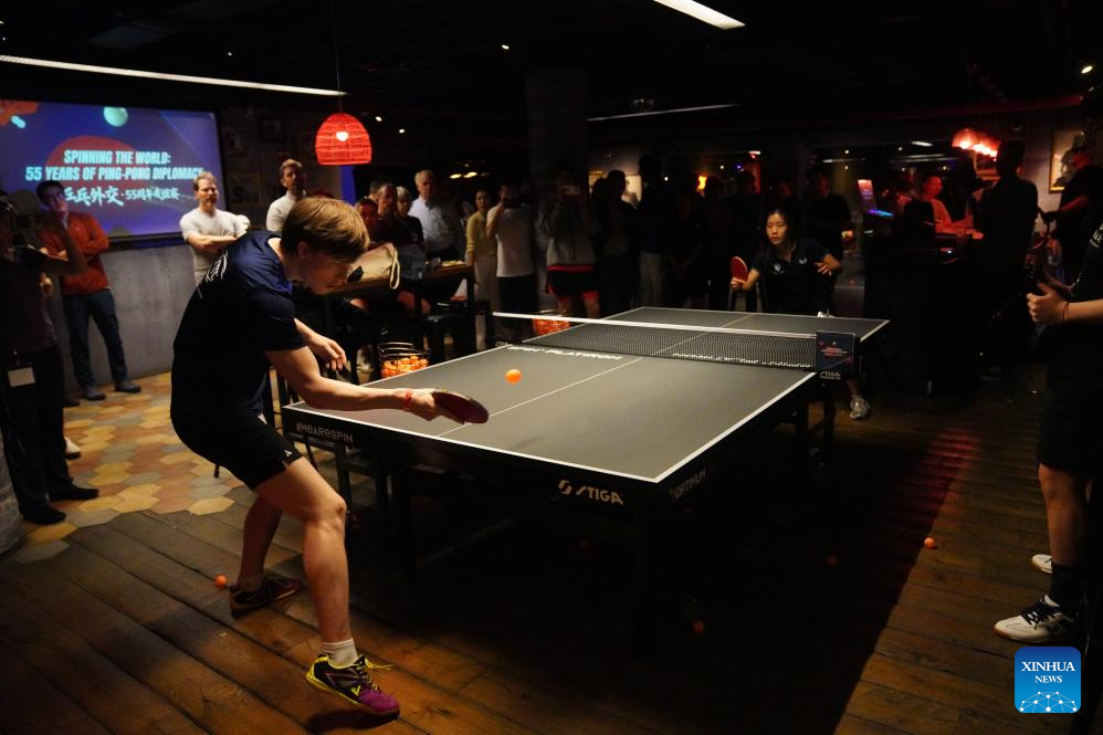 NEW YORK, April 18 (Xinhua) -- Chinese and U.S. table tennis athletes, university representatives and local enthusiasts gathered here on Friday to mark the 55th anniversary of "Ping-Pong Diplomacy," celebrating the enduring friendship fostered through sports exchanges.