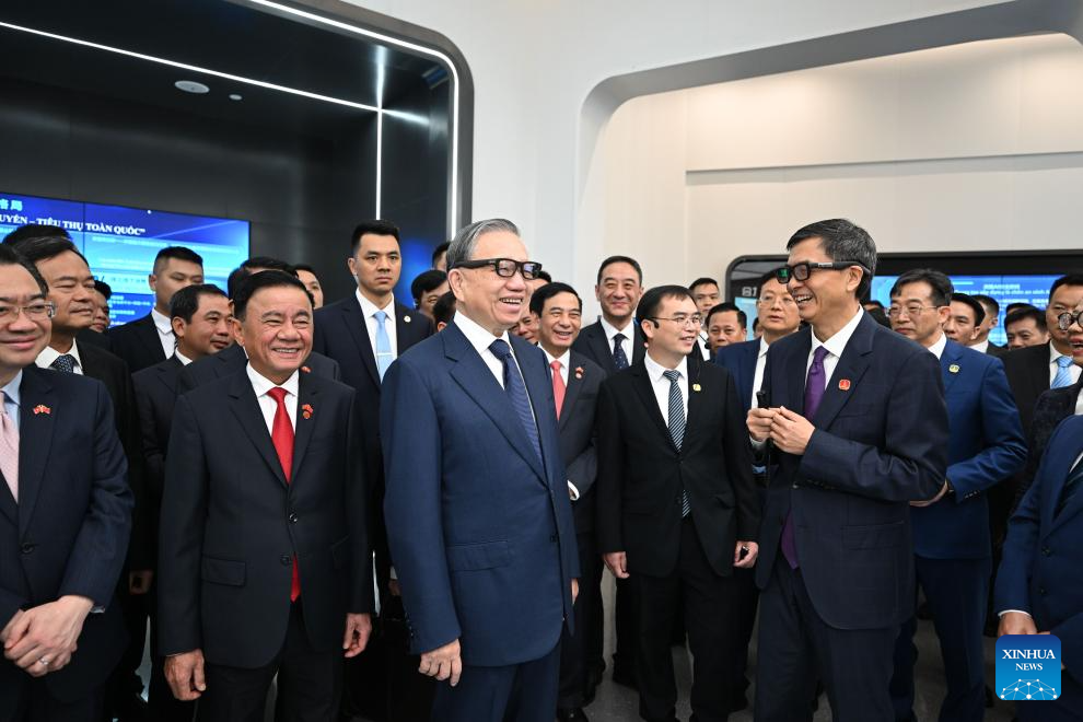 To Lam, general secretary of the Communist Party of Vietnam Central Committee and president of Vietnam, visits the China-ASEAN Countries Artificial Intelligence (AI) Application Cooperation Center in Nanning, south China's Guangxi Zhuang Autonomous Region, April 17, 2026.