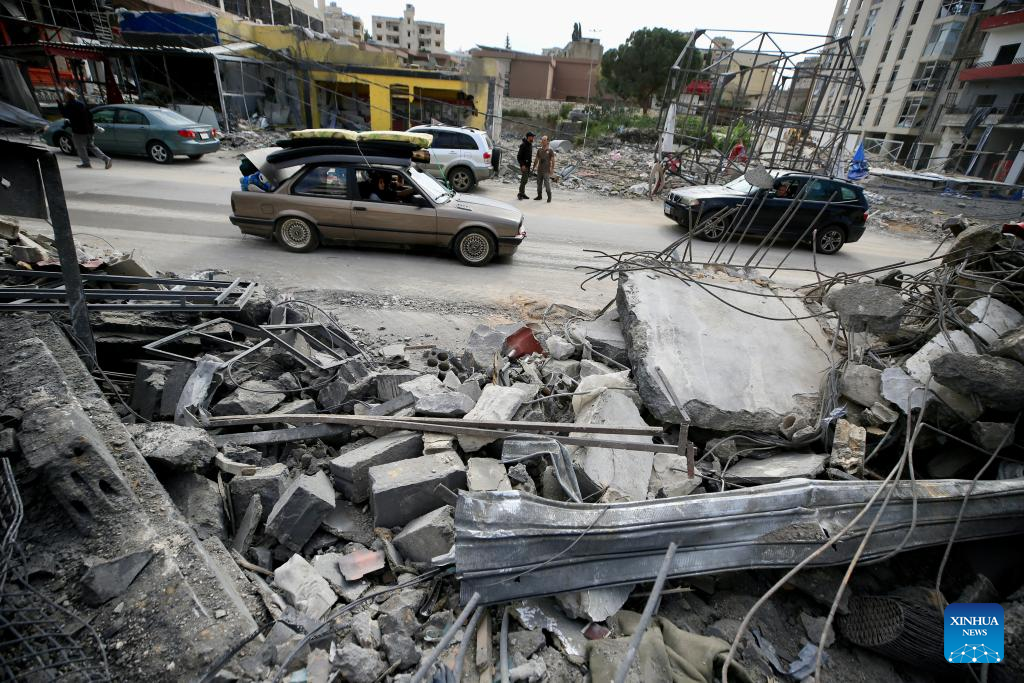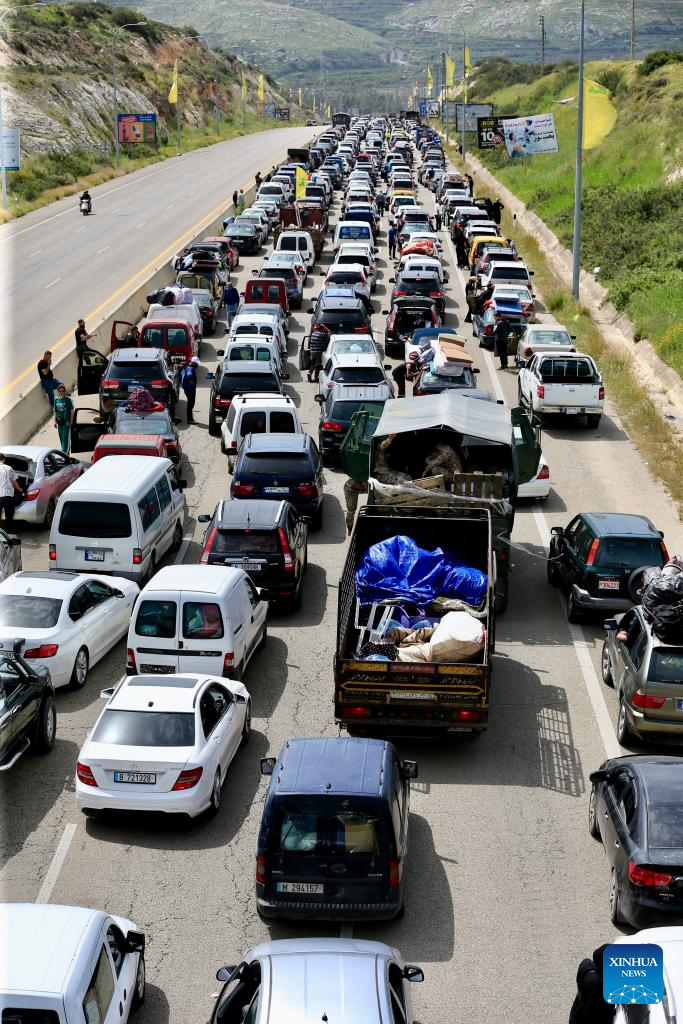 Photo taken on April 17, 2026 shows displaced people from southern Lebanon returning to their homes after the ceasefire in Qasmiyeh, Lebanon. A 10-day ceasefire between Israel and Lebanon took effect on Friday, following an announcement earlier by U.S. President Donald Trump. (Photo by Ali Hashisho/Xinhua)
