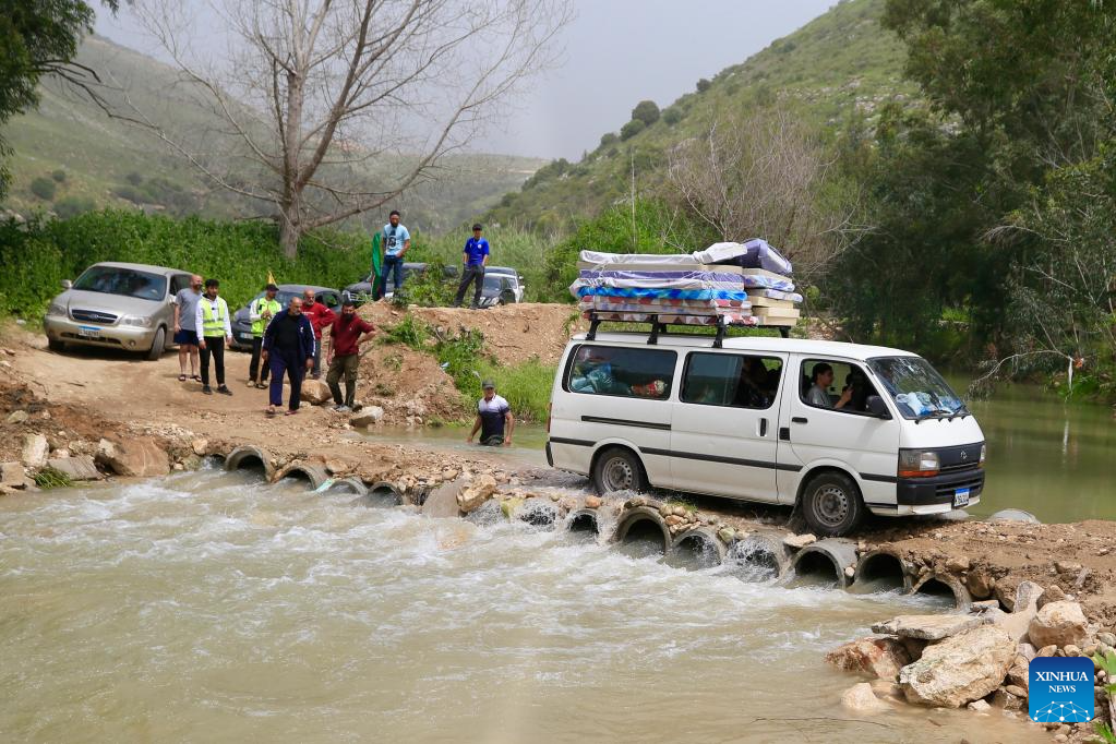 Displaced people drive across a temporary bridge on their way home in Bedias, Lebanon, on April 18, 2026. A 10-day ceasefire between Israel and Lebanon took effect at midnight between Thursday and Friday local time (2100 GMT), following an earlier announcement by U.S. President Donald Trump. (Photo by Ali Hashisho/Xinhua)