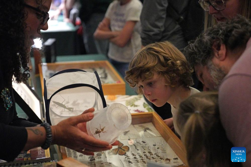 Children observe specimens during a festival celebrating the upcoming Earth Day at the American Museum of Natural History in New York, the United States, on April 18, 2026. An all-ages festival titled Earthfest was held at the American Museum of Natural History in New York on Saturday to celebrate the upcoming Earth Day, an annual event on April 22, with hands-on activities, science trivia, specimen identification stations, and more. (Xinhua/Zhang Fengguo)