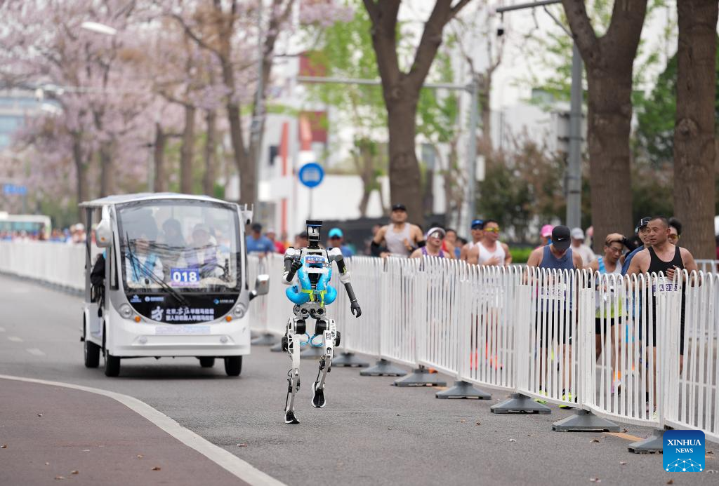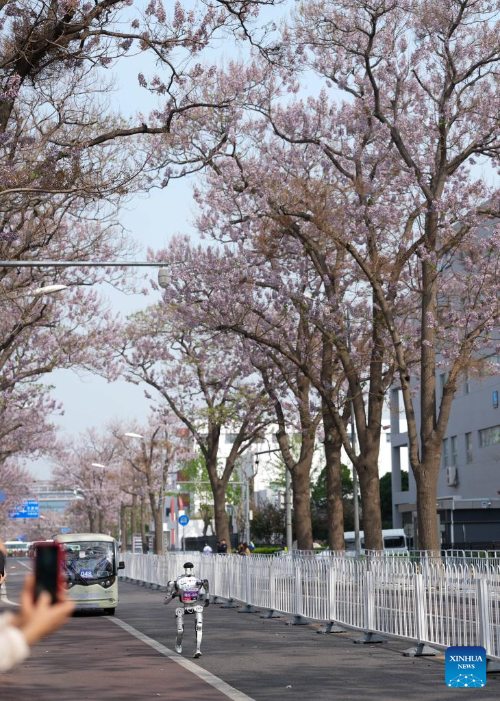 BEIJING, April 19 (Xinhua) -- Humanoid robot named "Flash" from Shenzhen Honor Smart Technology Development Co., Ltd. claimed victory at the 2026 Beijing E-Town half-marathon with a time of 50 minutes and 26 seconds in autonomous navigation on Sunday, beating the human world record of 57:20.