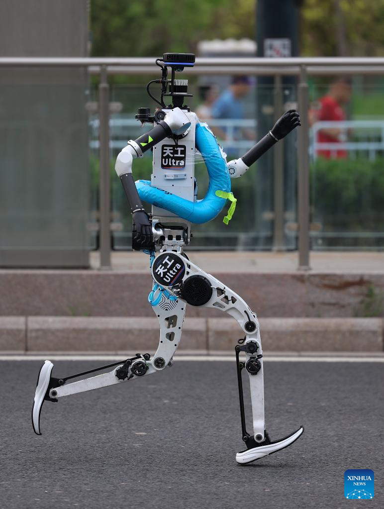 Humanoid robot "Tiangong Ultra-2026" of Kexinweilai Team in the autonomous category runs during the Beijing E-Town half-marathon and humanoid robots half-marathon in the Beijing Economic-Technological Development Area in southeast Beijing, China, April 19, 2026. (Xinhua/Xie Han)