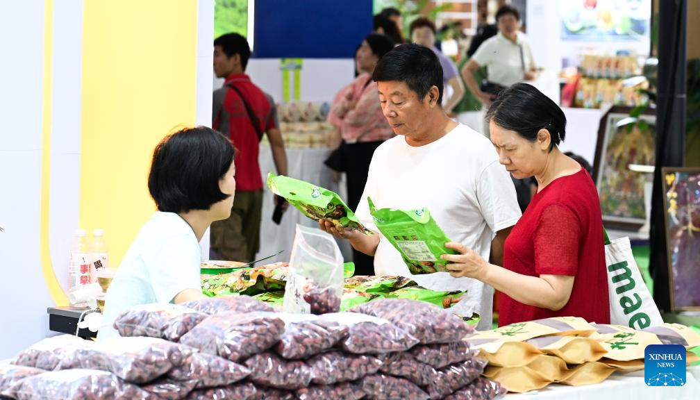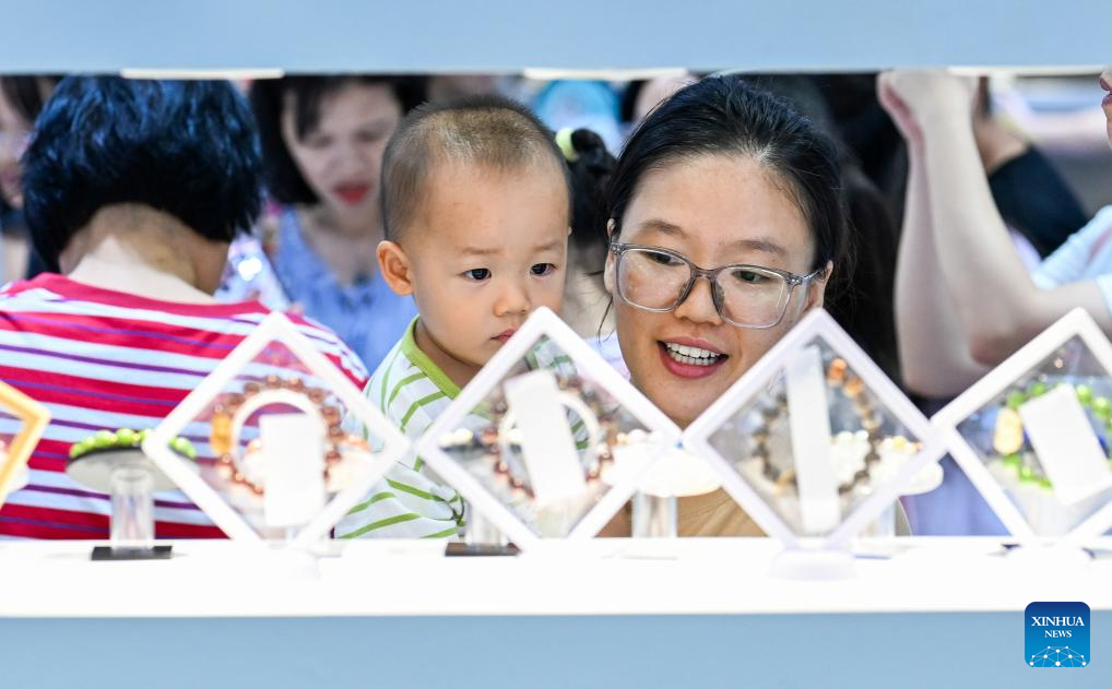 This year, the total exhibition area hit 143,000 square meters, an increase of 13,000 square meters compared to last year. The event attracted over 3,400 brands from more than 60 countries and regions, with international exhibits accounting for 65 percent of the total, up 20 percentage points from last year. (Xinhua/Yang Guanyu)