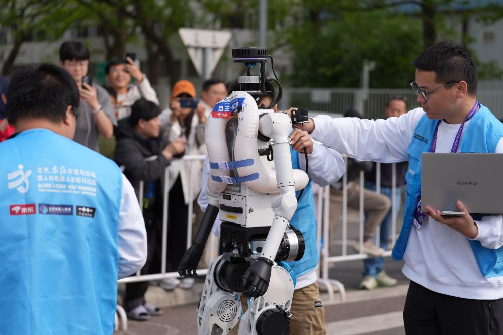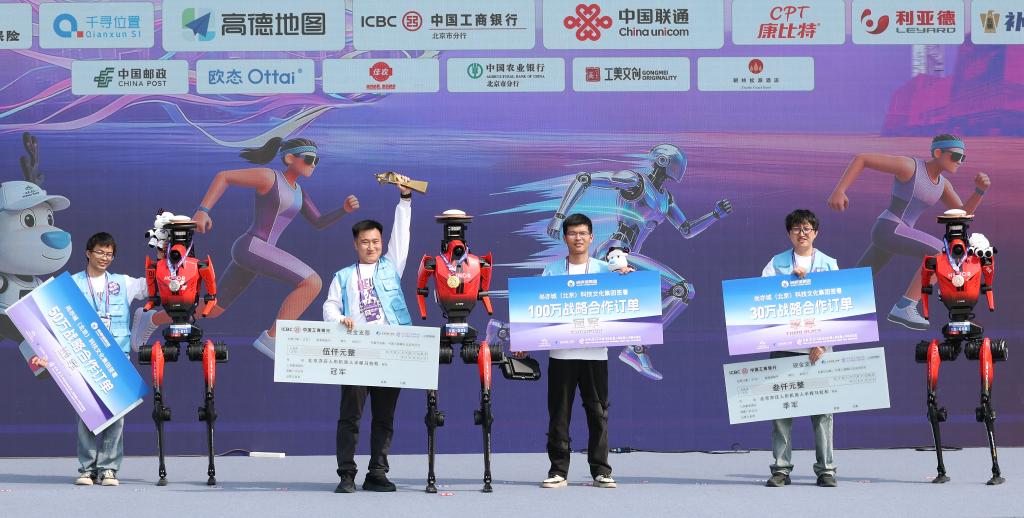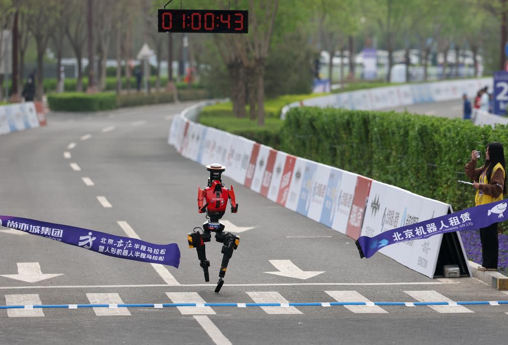 Humanoid robot "Flash" (L) of Pofengshandian Team in the remote-controlled category runs during the Beijing E-Town half-marathon and humanoid robots half-marathon in the Beijing Economic-Technological Development Area in southeast Beijing, China, April 19, 2026. (Xinhua/Luo Yuan)Runners (R) and humanoid robot "Booster T2" (C) of Qinghe Team in the autonomous category compete during the Beijing E-Town half-marathon and humanoid robots half-marathon in the Beijing Economic-Technological Development Area in southeast Beijing, China, April 19, 2026. (Xinhua/Xie Han)Humanoid robot "Tiangong Ultra-2025" of Tianyi Team in the autonomous category runs during the Beijing E-Town half-marathon and humanoid robots half-marathon in the Beijing Economic-Technological Development Area in southeast Beijing, China, April 19, 2026. (Xinhua/Luo Yuan)Humanoid robot "Flash" of Qitiandasheng Team in the autonomous category runs during the Beijing E-Town half-marathon and humanoid robots half-marathon in the Beijing Economic-Technological Development Area in southeast Beijing, China, April 19, 2026. (Xinhua/Luo Yuan)Humanoid robot "Flash" of Leitingshandian Team in the autonomous category crosses the finish line during the Beijing E-Town half-marathon and humanoid robots half-marathon in the Beijing Economic-Technological Development Area in southeast Beijing, China, April 19, 2026. (Xinhua/Zhang Chenlin)Engineers change batteries for the humanoid robot "Tiangong Ultra-2026" (C) of Tiantong Team in the autonomous category during the Beijing E-Town half-marathon and humanoid robots half-marathon in the Beijing Economic-Technological Development Area in southeast Beijing, China, April 19, 2026. (Xinhua/Xie Han)Humanoid robot "Flash" (C) of Jueyingchitu Team in the remote-controlled category starts during the Beijing E-Town half-marathon and humanoid robots half-marathon in the Beijing Economic-Technological Development Area in southeast Beijing, China, April 19, 2026. (Xinhua/Xie Han)Humanoid robot "Flash" of Qitiandasheng Team in the autonomous category runs during the Beijing E-Town half-marathon and humanoid robots half-marathon in the Beijing Economic-Technological Development Area in southeast Beijing, China, April 19, 2026. (Xinhua/Ju Huanzong)Gold medalist "Flash" (R, front) of Qitiandasheng Team in the autonomous category, silver medalist "Flash" (L, front) of Leitingshandian Team in the autonomous category and bronze medalist "Flash" (C, front) of Xinghuoliaoyuan Team in the autonomous category pose after the awarding ceremony for the humanoid robots' half-marathon at the Beijing E-Town half-marathon and humanoid robots half-marathon in the Beijing Economic-Technological Development Area in southeast Beijing, China, April 19, 2026. (Xinhua/Zhang Chenlin)Gold medalist "Flash" (C) of Qitiandasheng Team in the autonomous category, silver medalist "Flash" (2nd L) of Leitingshandian Team in the autonomous category and bronze medalist "Flash" (1st R) of Xinghuoliaoyuan Team in the autonomous category pose during the awarding ceremony for the humanoid robots' half-marathon at the Beijing E-Town half-marathon and humanoid robots half-marathon in the Beijing Economic-Technological Development Area in southeast Beijing, China, April 19, 2026. (Xinhua/Zhang Chenlin)
