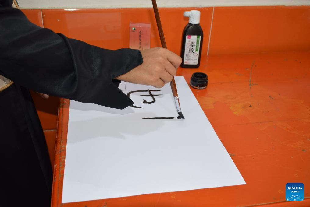 A student practices Chinese calligraphy at an event celebrating United Nations Chinese Language Day in Aden, Yemen, April 20, 2025. (Xinhua)