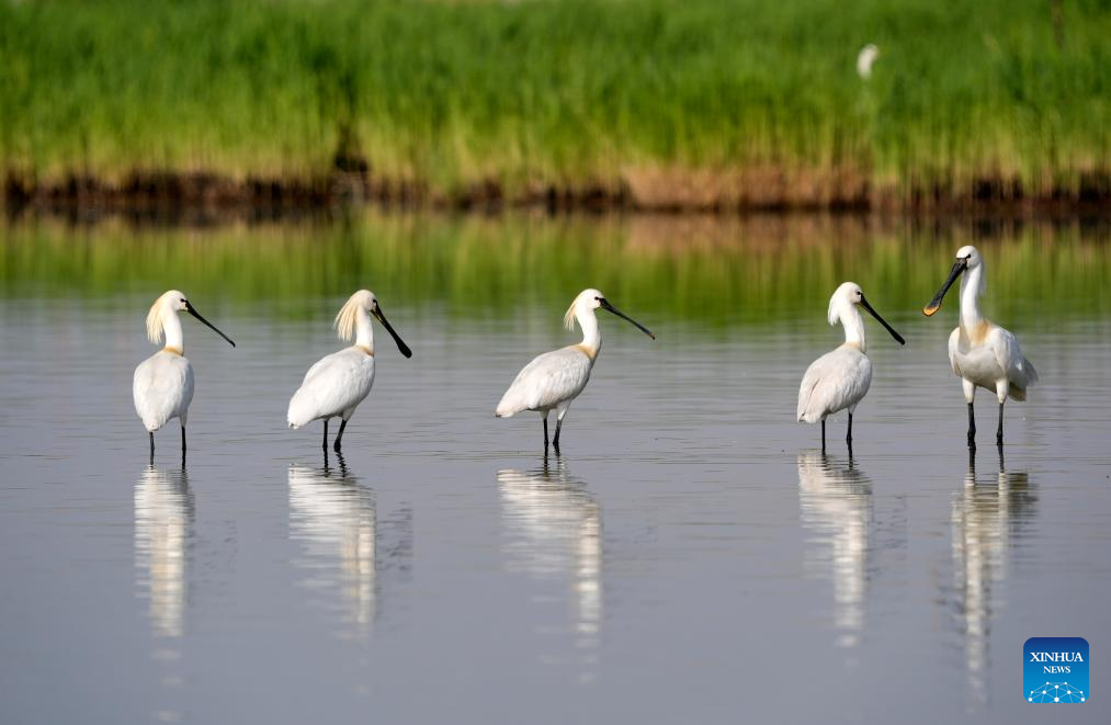 In recent years, the area has continuously advanced the systematic governance of mountains, rivers, forests, farmlands, lakes, grasslands and deserts, restored lakes previously used for aquaculture, converted farmlands back into wetlands, and improved both water quality and the overall ecological environment. The number of birds species in the area has grown from 178 in 2011 to 216. (Xinhua/Wang Peng)