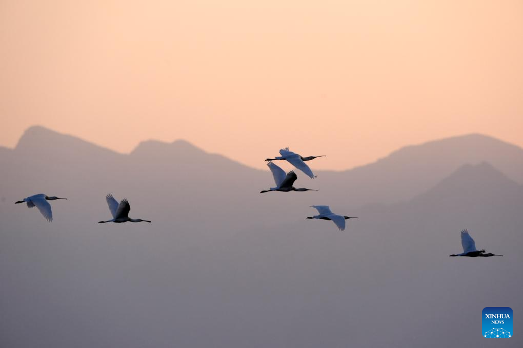 In recent years, the area has continuously advanced the systematic governance of mountains, rivers, forests, farmlands, lakes, grasslands and deserts, restored lakes previously used for aquaculture, converted farmlands back into wetlands, and improved both water quality and the overall ecological environment. The number of birds species in the area has grown from 178 in 2011 to 216. (Xinhua/Feng Kaihua)