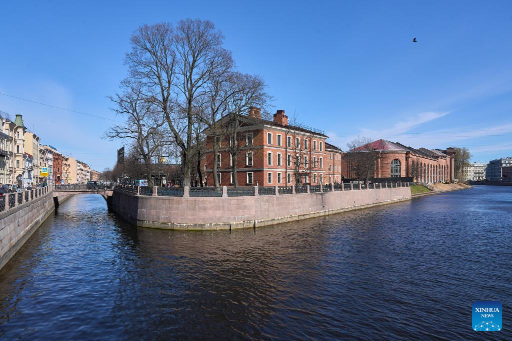 This photo taken on April 19, 2026 shows the scenery of the Moika River in St. Petersburg, Russia. St. Petersburg features a dense network of waterways and over 300 bridges crisscrossing the city. (Photo by Guo Feizhou/Xinhua)
