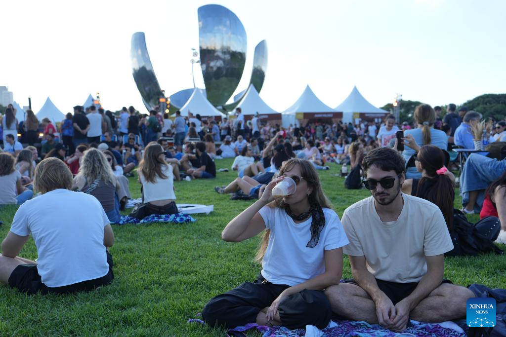 People taste coffee at a coffee festival in Buenos Aires, Argentina, April 18, 2026. The event featuring numerous stalls offering coffee and local specialty foods, has attracted large numbers of residents and tourists and will last until Sunday. (Xinhua/Zhang Duo)
