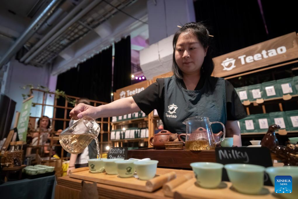 An exhibitor demonstrates tea brewing techniques at the Helsinki Coffee Festival 2026 held in Helsinki, the capital of Finland, April 19, 2026. The Helsinki Coffee Festival 2026 was held in Helsinki from April 17 to 19. More than 50 exhibitors showcased a wide range of products, including coffee, coffee equipment, tea beverages and ice cream. (Photo by Matti Matikainen/Xinhua)