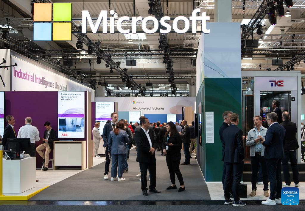 People visit the exhibition area of Microsoft at Hannover Messe 2026 in Hannover, Germany, April 20, 2026.