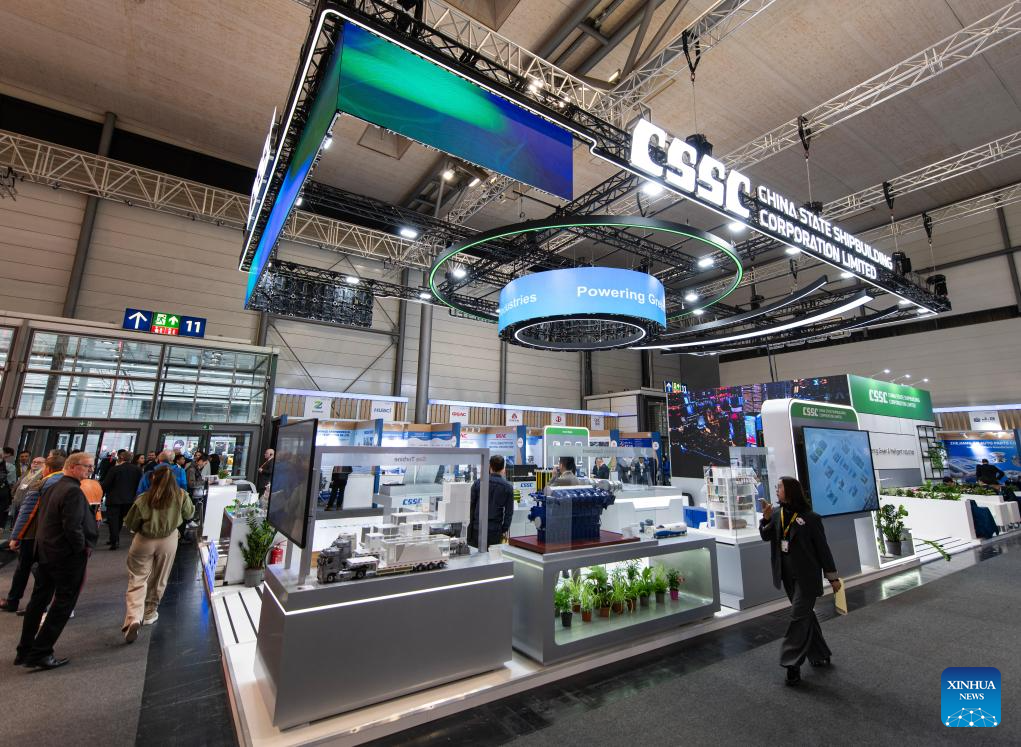 This photo taken on April 20, 2026 shows the exhibition area of China State Shipbuilding Corporation Limited at Hannover Messe 2026 in Hannover, Germany.