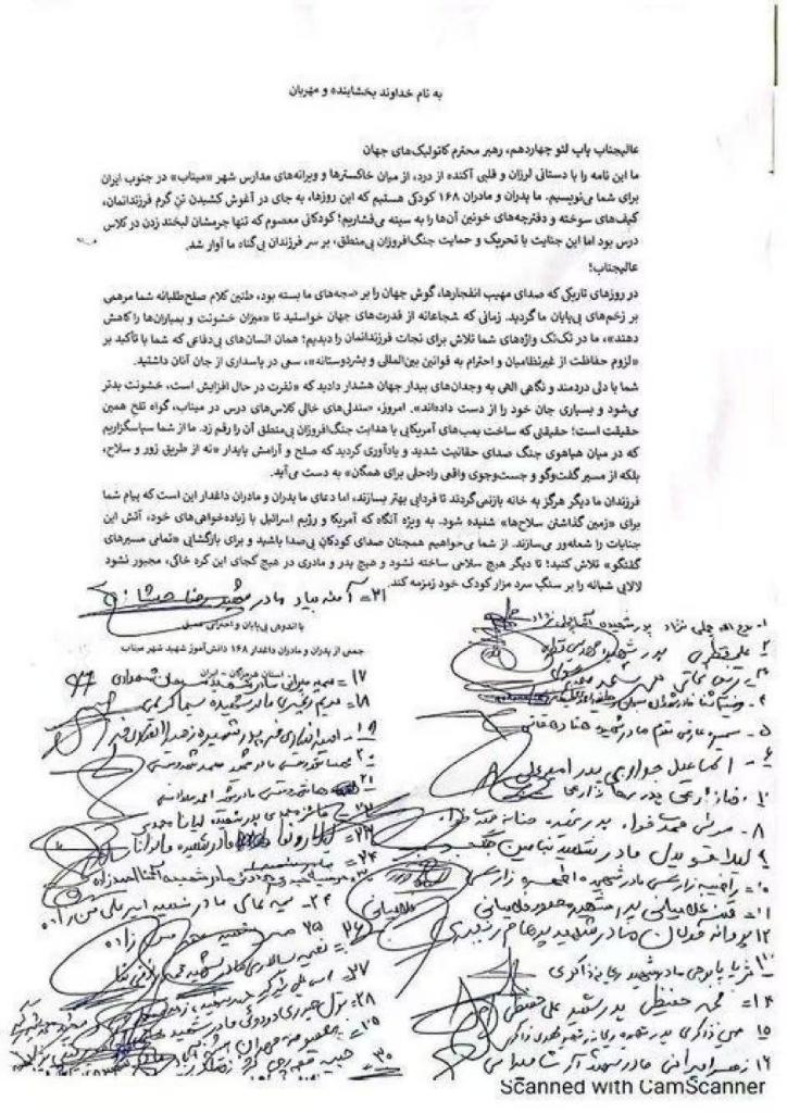 Grieving parents of over 100 schoolchildren killed in a U.S.-Israel airstrike on Iran's Minab, wrote to Pope Leo XIV, thanking him for his advocacy of peace.