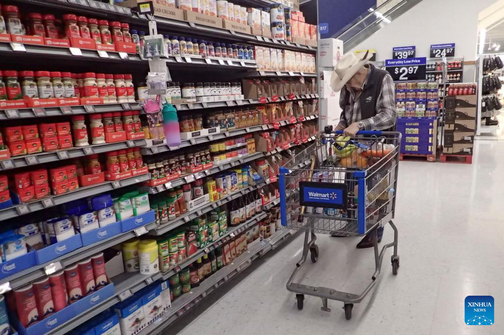 A customer shops for groceries at a Walmart store in Vancouver, British Columbia, Canada, April 20, 2026. Canada's Consumer Price Index (CPI) increased 2.4 percent year over year in March, up from an increase of 1.8 percent in February, Statistics Canada said on Monday. (Photo by Liang Sen/Xinhua)